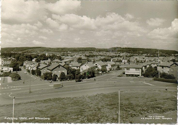 Utsikt mot Mösseberg från Medborgarhuset. Kvarteret i mitten kv. S:t Johannes. Till vänster Humlegården.