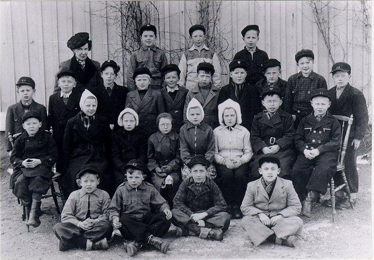 Yllestads skola 1945. Sittande på marken från vänster: Bengt Warrén, Berga, Kättilstorp, Elof Wallin, Gunnabo, Yllestad, Lennart Thor, Kättilstorp, Mats Gustavsson, Badene, Yllestad. Sittande från vänster: Gösta Blom, Smärtorna, Yllestad, Linnéa Karlsson, Hallebacka, Yllestad, Maj Karlsson, Långebacke, Yllestad, Sara Moberg, Höjentorp, Yllestad, Inga Thim, Vistorp, Ros-Marie Karlsson, Roseberg, Kättilstorp, Karlo ? , Ängsro, Yllestad, Bernt-Rune Karlsson, Roseberg, Kättilstorp. Stående första raden från vänster: Bengt Pedersén, Yllestad, Sture Sandahl, Kättilstorp, Evert Helgoson, Prästgården, Yllestad, Göran Hansson, Ängsro, Yllestad, Karl-Erik Helin, Ännagården, Yllestad, Assar Svensson, Nybygget, Yllestad, Rune Karlstedt, Vistorp, Arne Karlsson, Ledsgården, Yllestad, Per-Olof Thim, Vistorp, Bernt Karlsson, Ödeberg, Yllestad. Stående bakre raden från vänster: Brita Carlberg, (lärare) Yllestads skola, Sven-Ola Andersson, Kättilstorp, Ture Söderkvist, Kättilstorp, Walto ? , Badene, Yllestad.