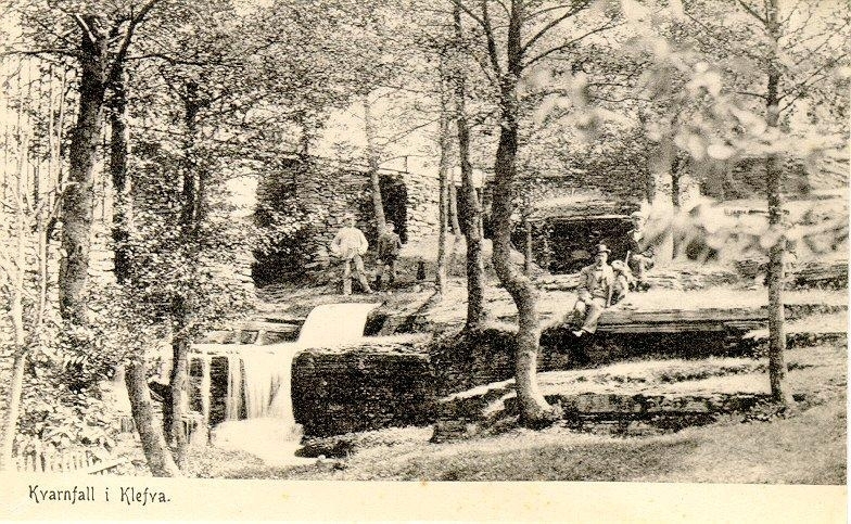 Vid kvarnen i Backor. Sittande är handlande Gustaf Th. Olsson.