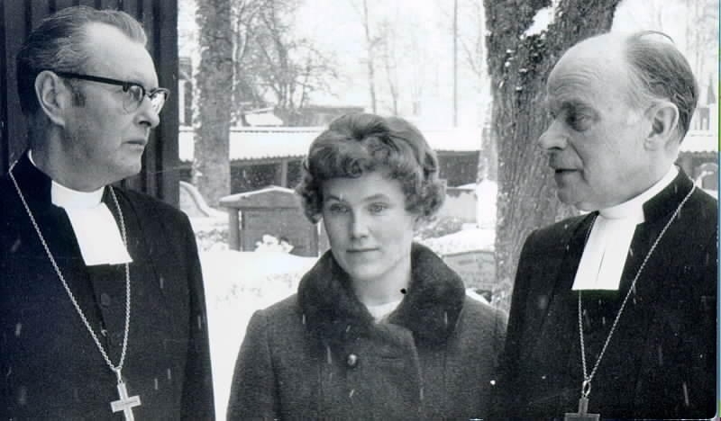 Två biskopar och en missionär. Helge Fosseus från Halland, 1912-2003), Sven Danell och troligen missionär Majken Johansson.
