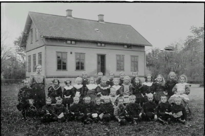 Rantens småskola med lärarinnan Emma Larsson och hennes klass.