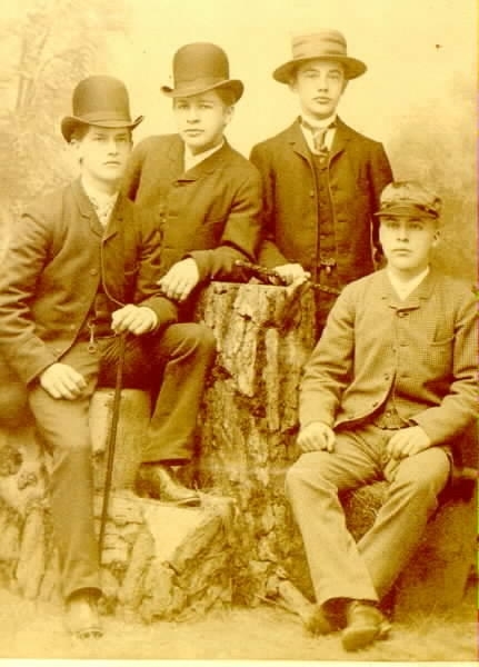 Fyra av stadens ungherrar år 1890. Från vänster Arvid Jakobson,Tobias Westlin, Hjalmar Lundin, Elias Westlin.