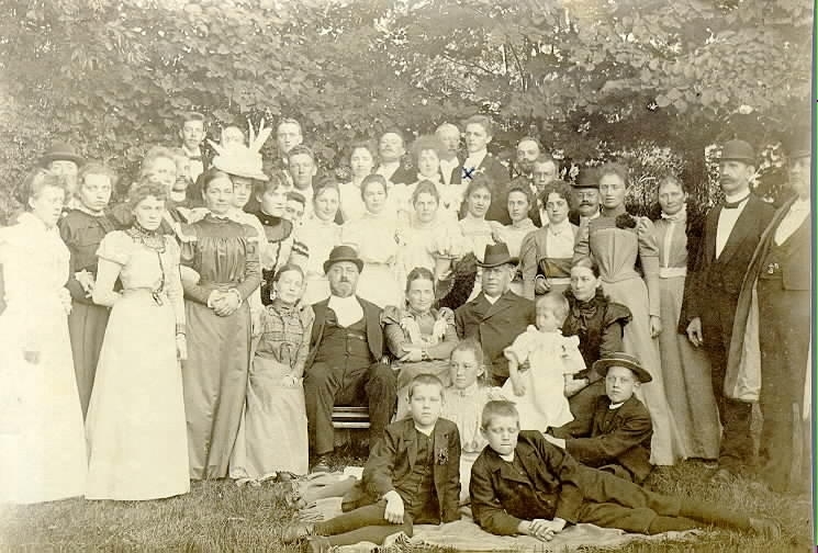 Handlanden Johan Janzons 60-årsdag 1902. 1. Samzelius 2. Fröken Pettersson 3. Husföreståndarinnan hos Warenbergs 4. Edit Andersson ("Steka", "Lilla västficksformatet") 5. Hilma Nordström 6. okänd 7. Karl Janzon 8. Okänd 9. Ida Lundqvist 10. Mary Frykberg 11. Hugo Tegnér 12. Carl Lagergren, stationsskrivare 13. Berta Andersson 14. Karl Lagergren ? ev. 15. Hilma Eriksson 16. Pettersson, fru, gift med Nr 17 17. C.E. Pettersson (kollega) 18. Troligen nr 19:s fru 19. Sigurd Johansson, Klutis 20-21. okända 22. Tullie Helander 23. E.F. Eriksson regementsläkare ? 24. Ivar Tengbom professor 25. Ebba Hedborg 26. Fru Emelia Janzon 27. J.Janzon Handl. 28. Sigrid Jakobsson 29. Hjalmar Lundin 30. Ivan Nyborg Rådman, son till nr 17. 31. Villlie Hellman 32. Degerholm bankkamrer 33. Lüning fru 34. okänd 35. Helga Warenberg fru 36. J.W. Ander bankkassör 37. Lüning postmäst. 38-39 okända 40. möjligen Elsa Lundkvist 41. Ivar Janzon 42. Valdemar Janzon 43. Gustaf Janzon. För placering se musets bildarkiv.