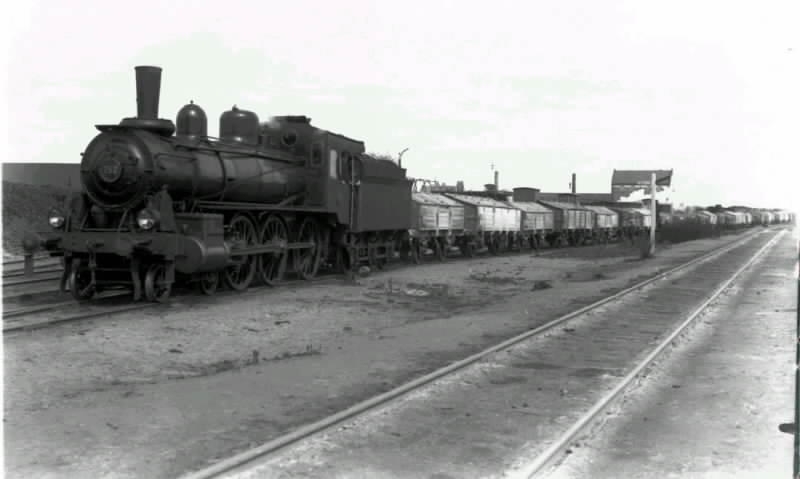 Kalktåg, specialvagnar för kalk, Falköping 1910.