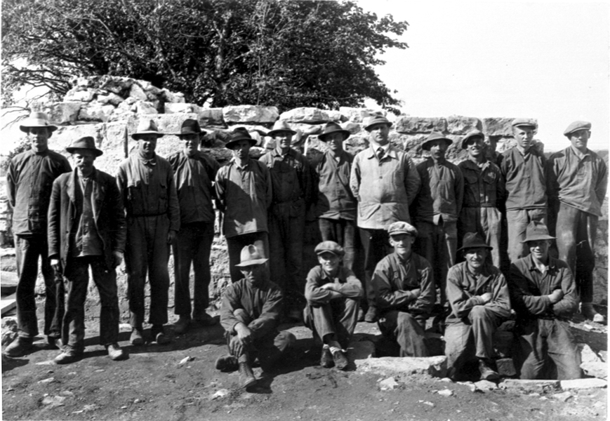 Gudhems kloster. Ejnar Johansson nr 3 fr. v. Eskil Johansson nr 2 sittande. Olof Hedén nr 8 fr. v.