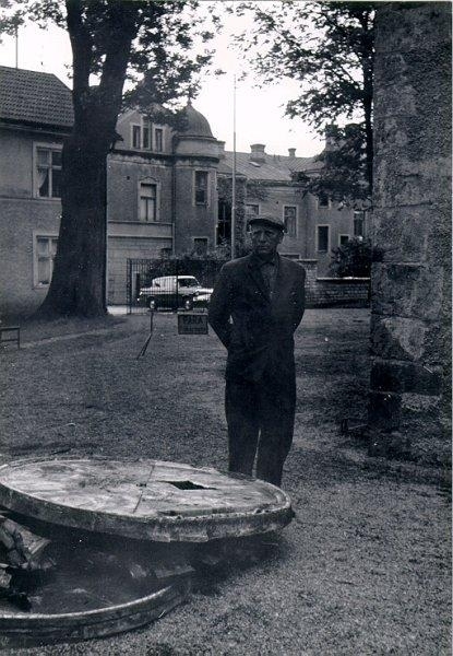 Kyrkog. förman R. Högberg, vid S:t Olofs kyrkans gamla tornurstavlor.