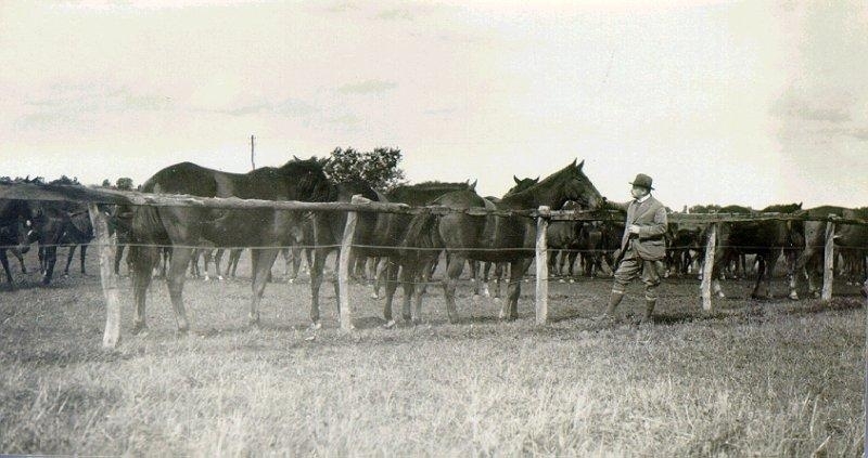 Överstelöjtnant Raab vid Gudhems hästar. (Remontdepån)
