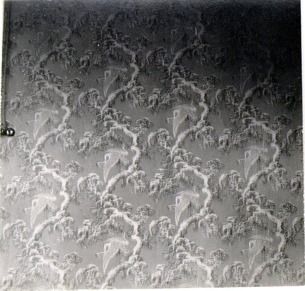 Kv. Guldsmeden. Storgatan 18, Per Lars tomt. Den "Janssonska" fastigheten före rivningen 1957. Tapeten i stora salen 1 tr. upp i huvudbyggnaden.