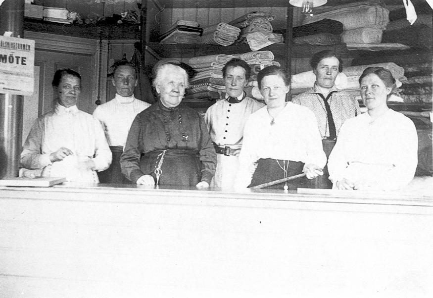 Manufakturaffären, Floby. Fröken Karolina Aronsson. Ägare i mitten.