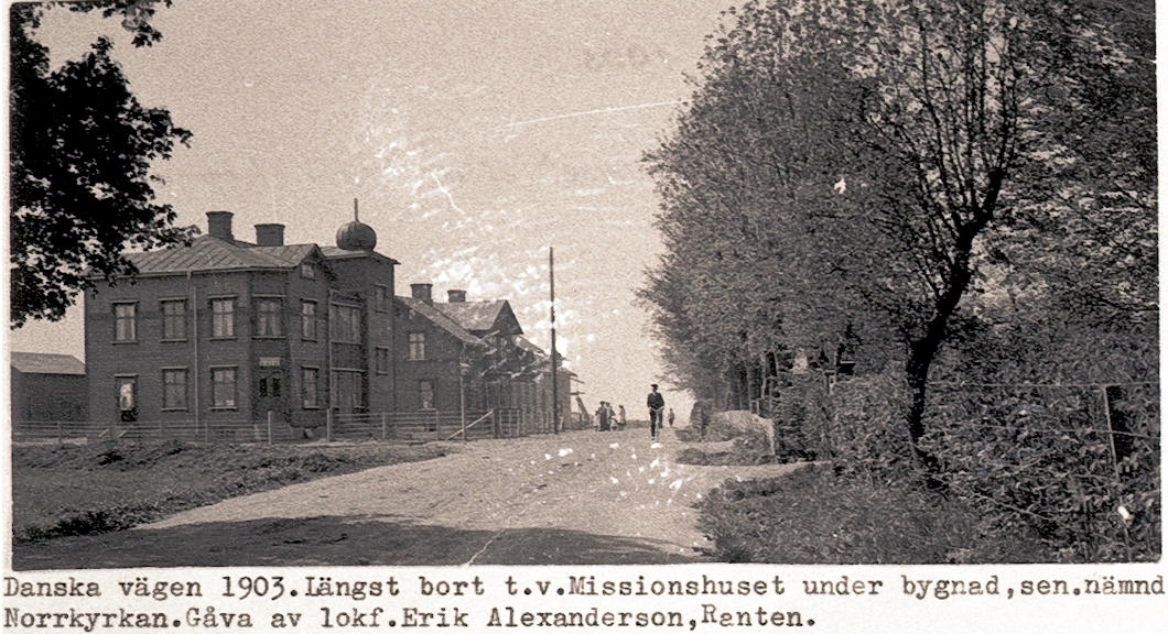 Danska vägen 1903. Längst bort till vänster Missionshuset under byggnad, senare nämnd Norrkyrkan.