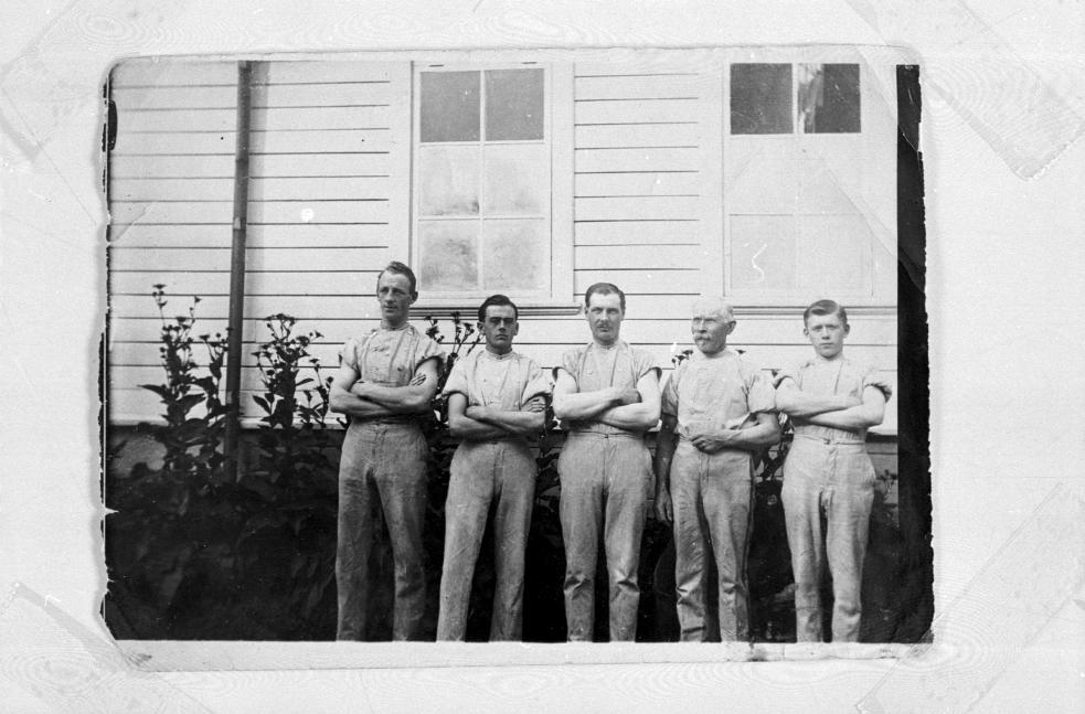 Badanställda. I mitten Arvid Andersson och 2:a fr. höger Moberg.