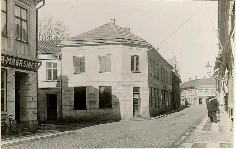 Hörnet av Storgatan och Landbogatan. Sedan byggdes Sparbanken där.