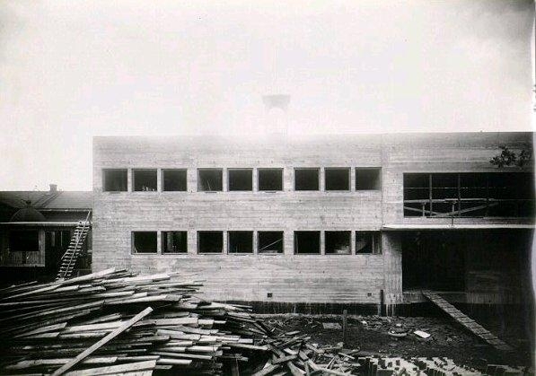 Falköpings central. Centralen under byggnad 1934. Till v. Kleins kiosk.