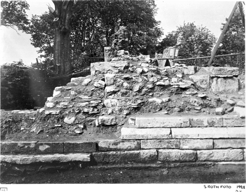 Klosterkyrkans östmur från öster. Mot mittkorets sydmur.