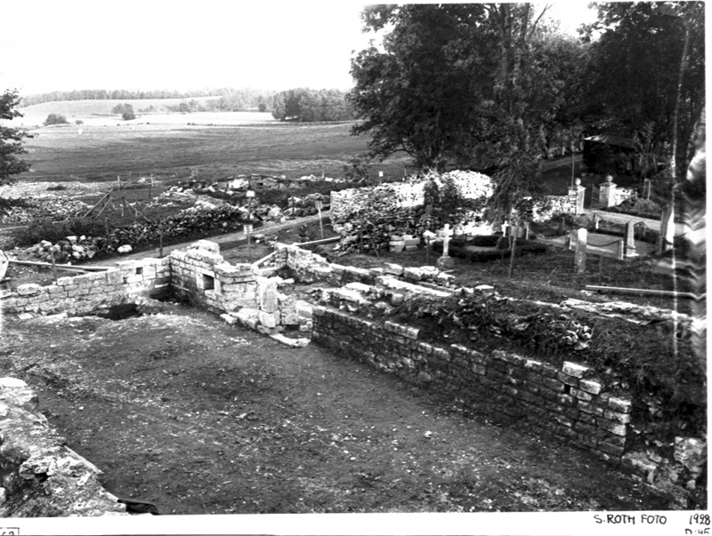 Korpartiet från nordväst. I fonden ö. huset och t.h. därom upplag av sten från fyllningen.