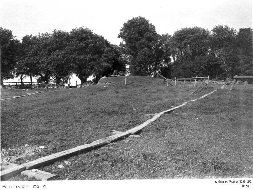 Östra huset från öster. Kullen, som sträckt sig så långt som till fig. t.v. avtagen intill östra husets södra mur.