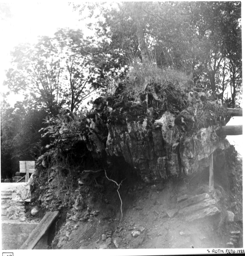 Nedrasad murklump vid ingången till södra tvärskeppet från norr.