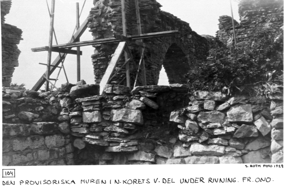 Den provisoriska muren i n. korets v. del under rivning fr. ostnordost.
