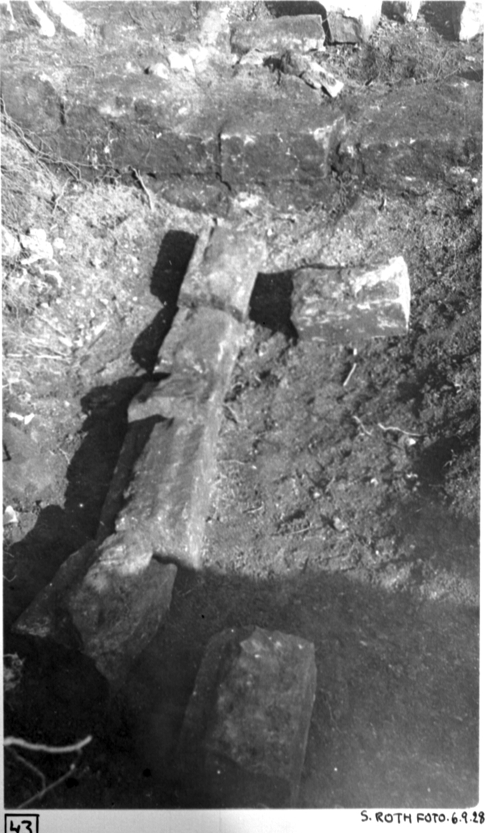 Norra koret med nedrasade valvstenar från söder. Norra muren.