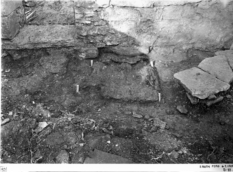 Nordöstkapellet mot väster = sakristian. Dörröppning till norra koret, trägolv markerat med vita ribbor.