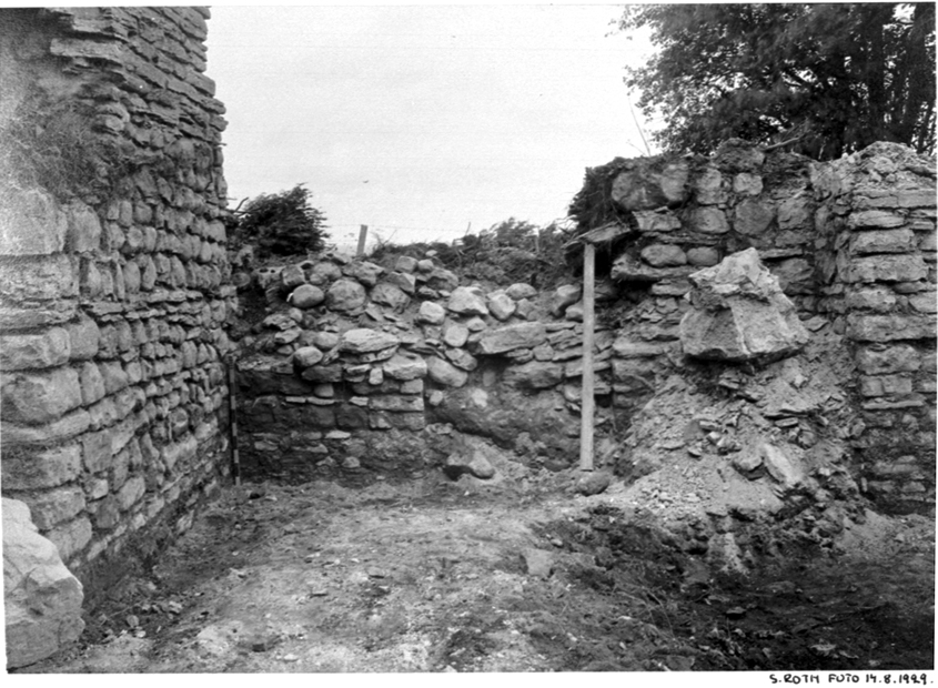 Norra tvärskeppsingången från söder. Före tvärskeppets utgrävning, kryssvalvsfragment.