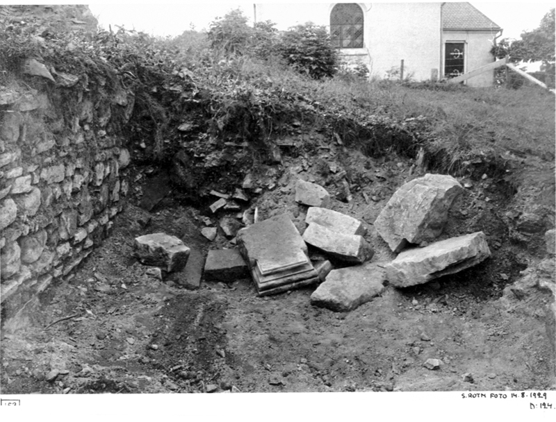 Södra korsgången. Nedrasade stenar från öster.