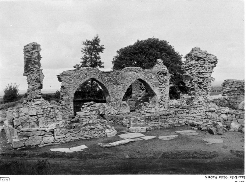 Klosterkyrkans v. del efter utgrävningen, från ssv.