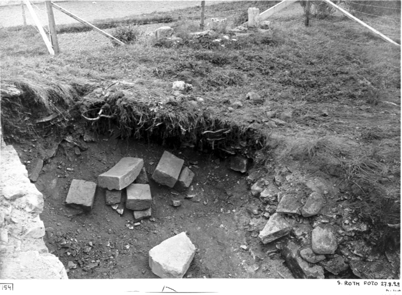 Södra korsgången. Huggna stenar från öster.