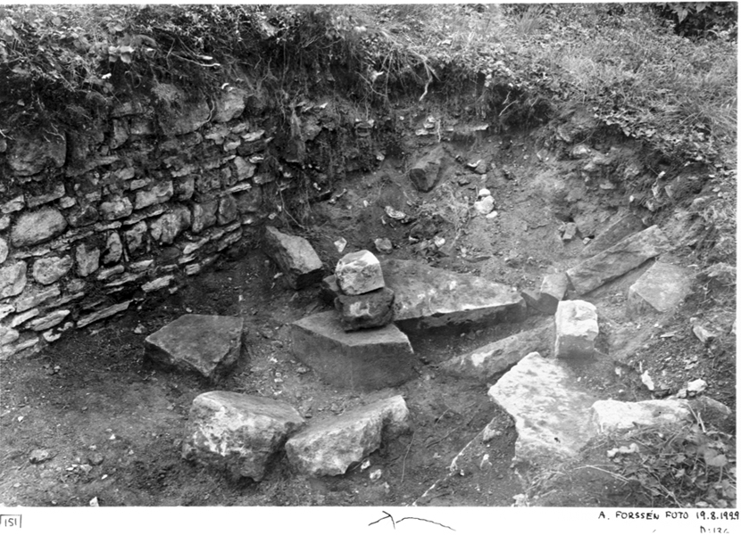 Södra korsgången. Nedrasade stenar från nordost.