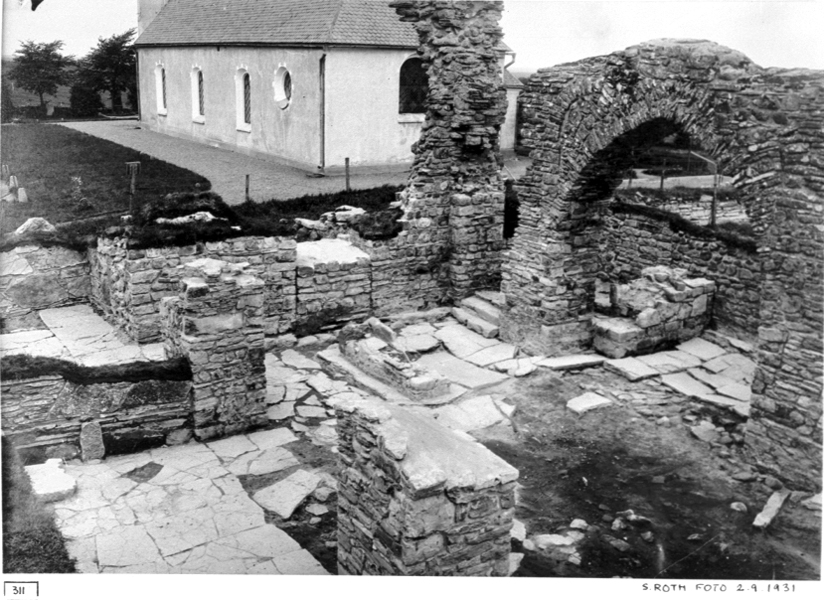 Klosterkyrkans v. del från sydost Kyrkan i bakgrunden.