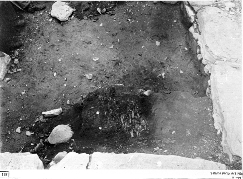 Nordöstra kapellet från öster. Sakristian. Trägolv II med fynd 1930:48 1930:49.