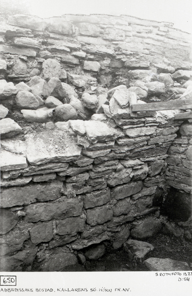 Abbedissans bostad. Källarens s.o. hörn fr. nordväst