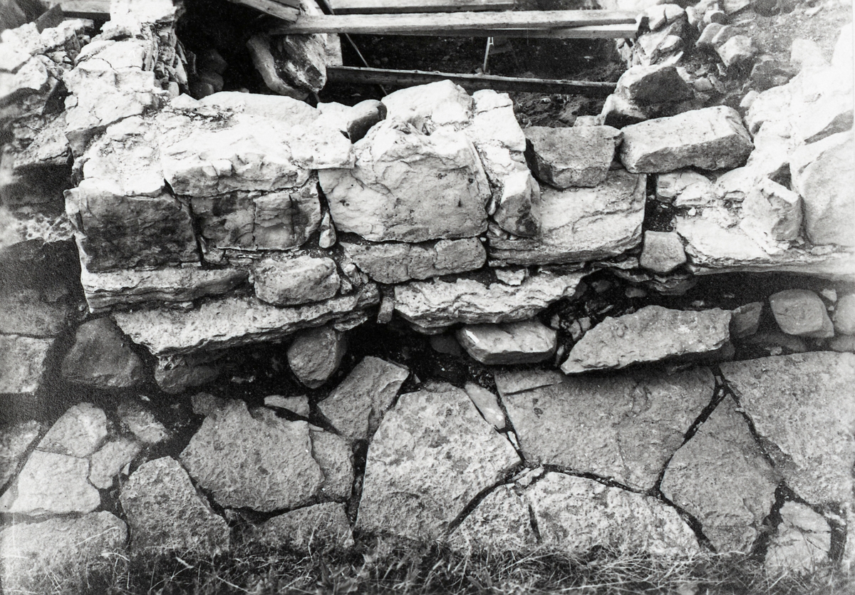 Västra förstugan från söder. Pilen utmärker fyndläge för nyckel.