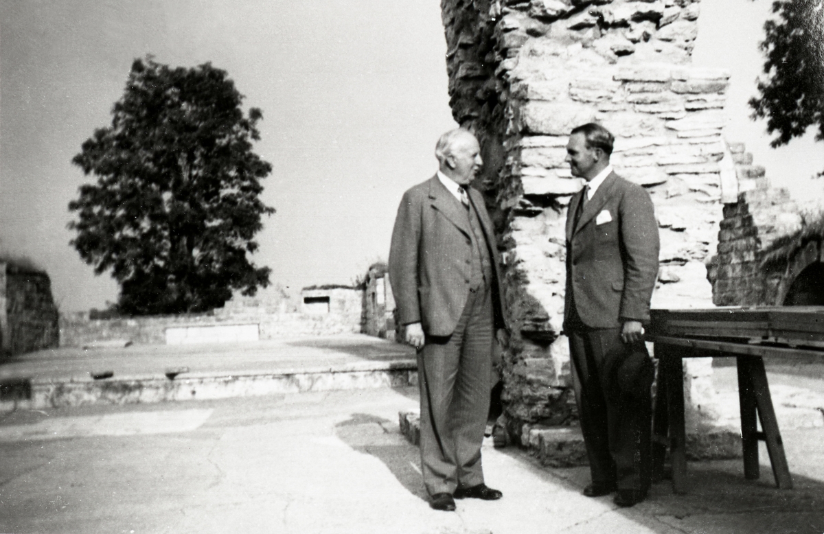 Från v. S. Roth, S. Curman på besök i Gudhems klosterruin.