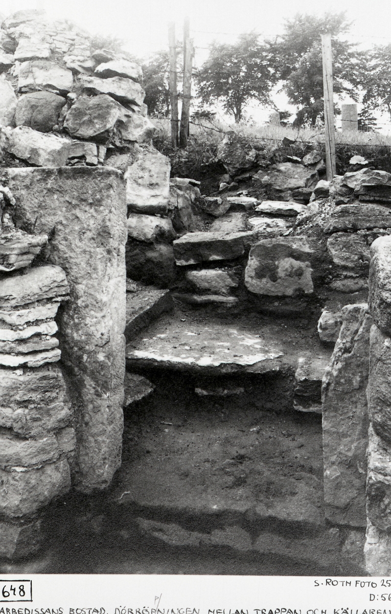 Abbedissans bostad. Dörröppningen mellan trappan och källaren fr.v.