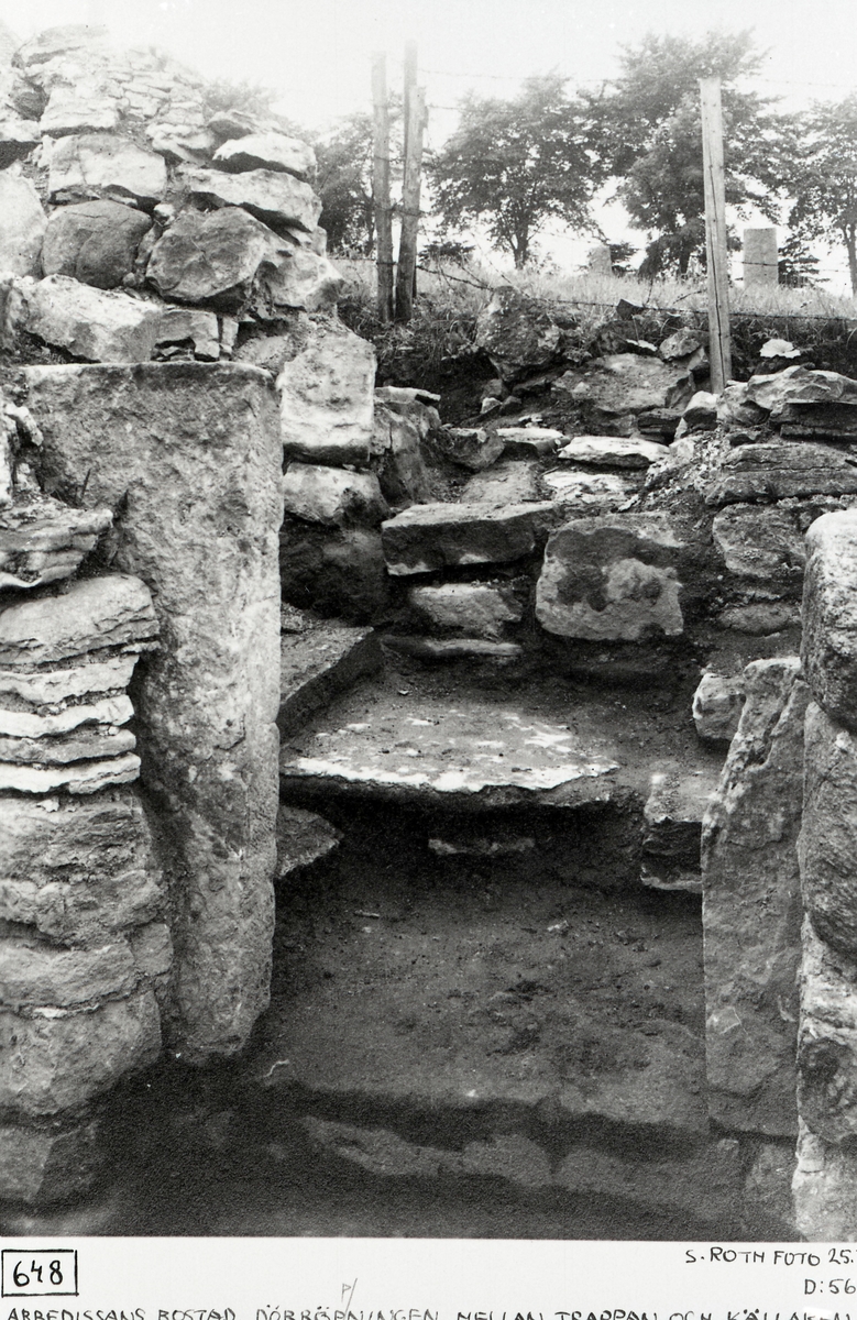 Abbedissans bostad. Dörröppningen mellan trappan och källaren fr.v.