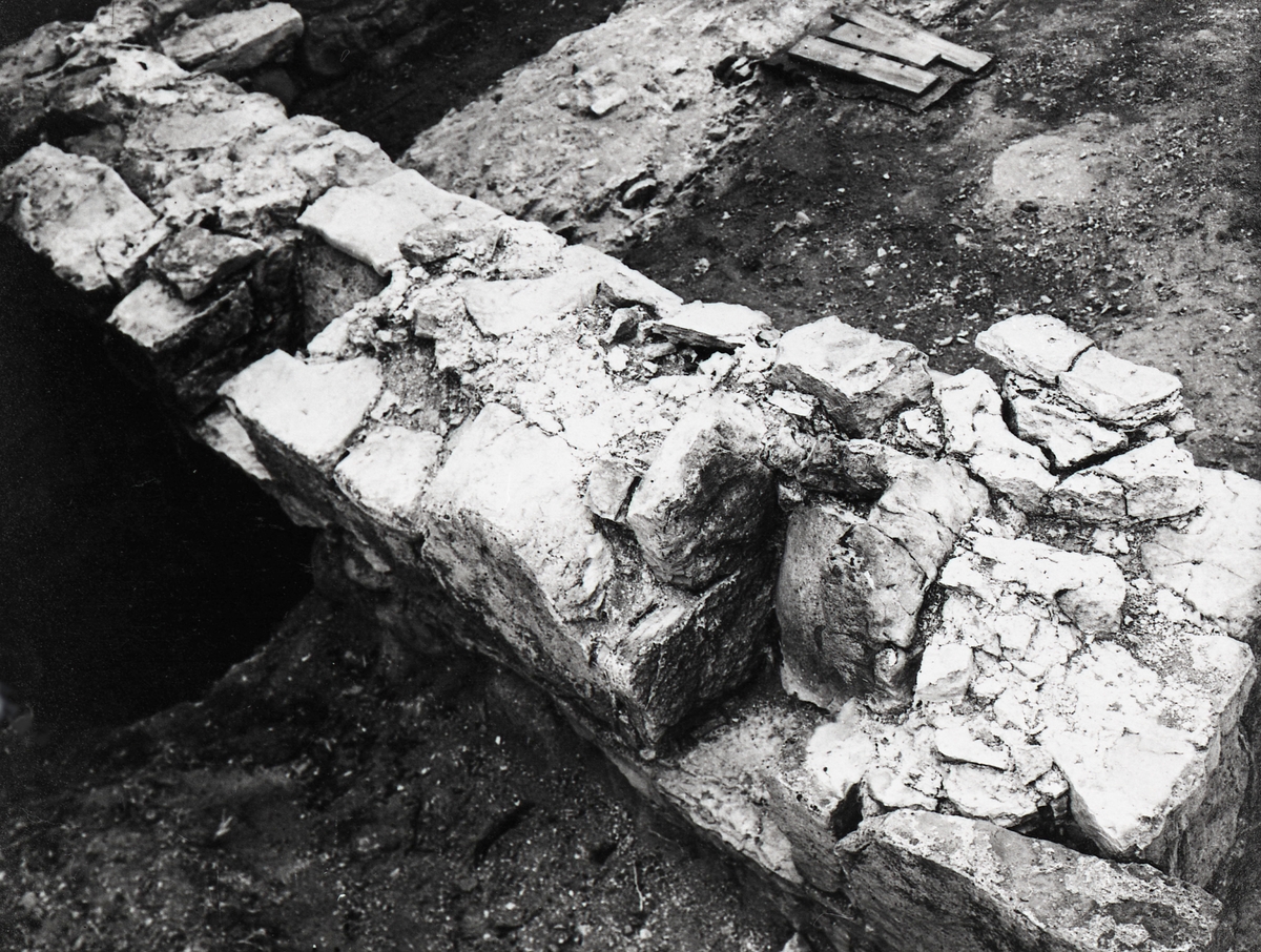 Östra huset. Södra väggens mittparti med nisch och romhål från sydost. Västra del från nordost.