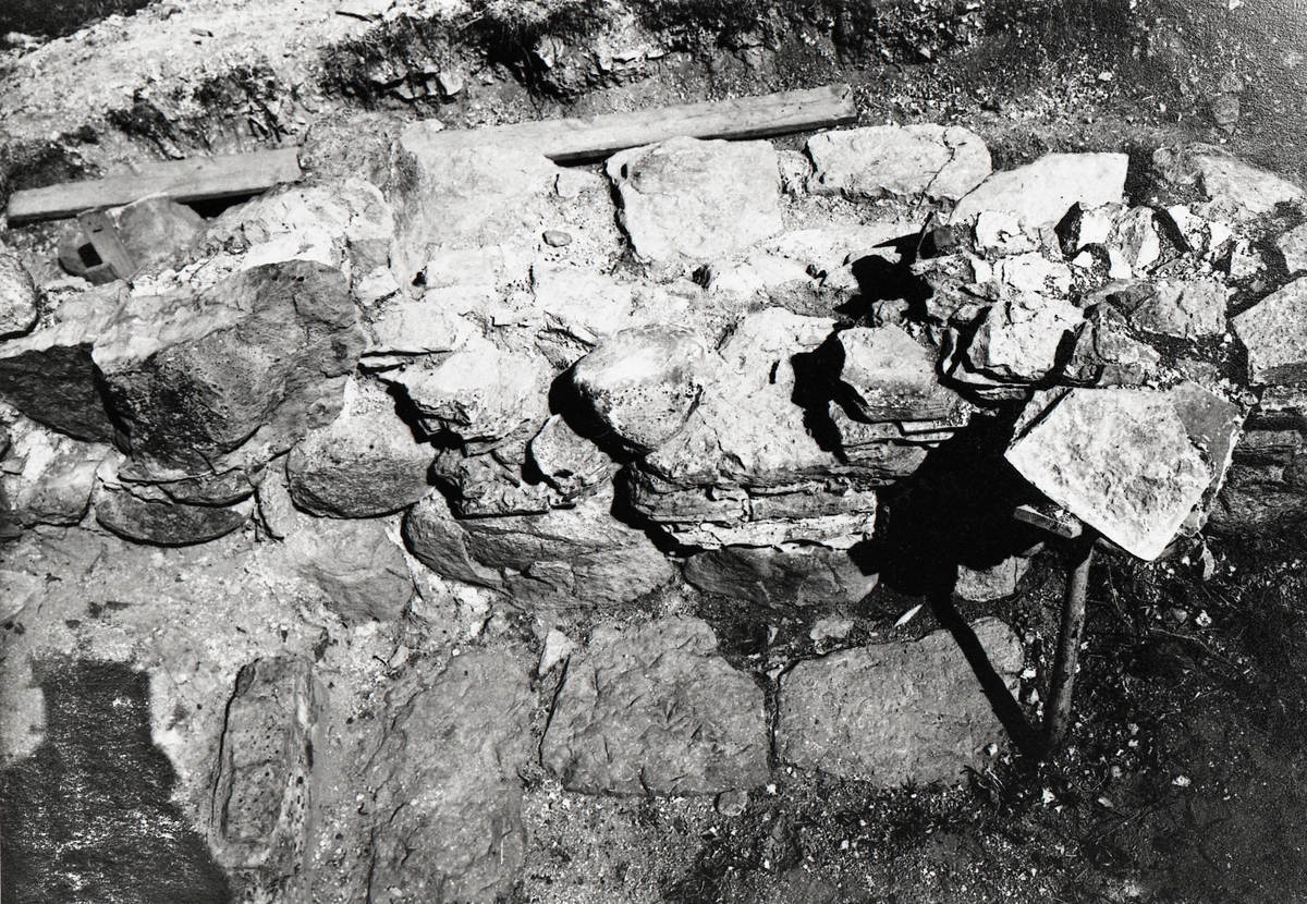 Östra huset. Östra väggen med vavlrester sedd inifrån.