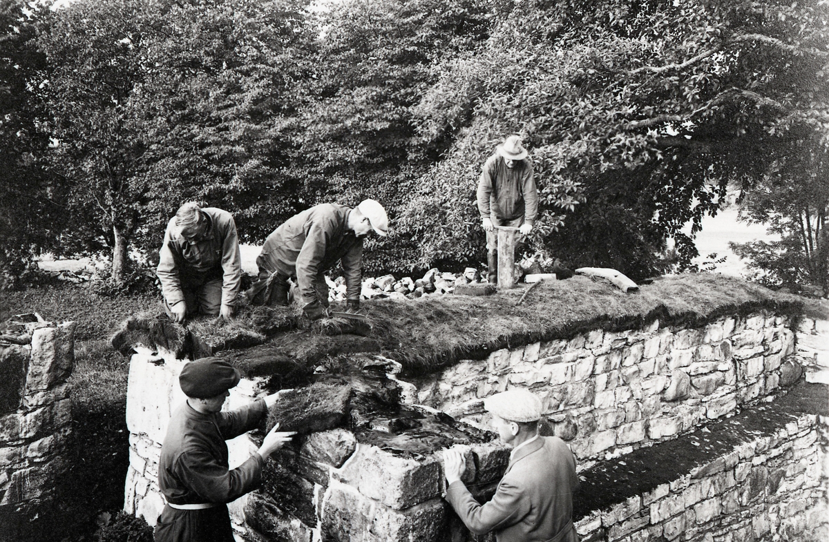 Arbete med torvning av ö. klosterlängans nordmur.