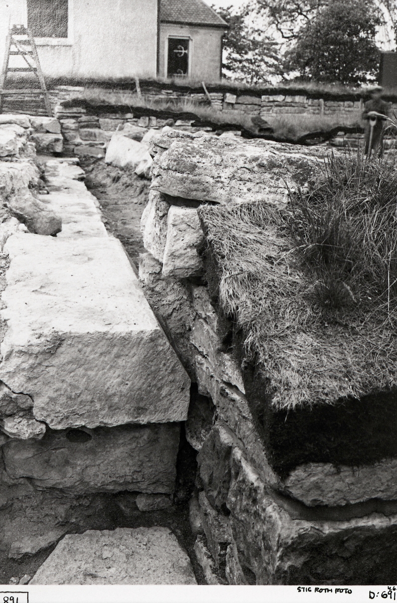 Södra korsgångens nordmur. Östra fasadens västmur från öster.
