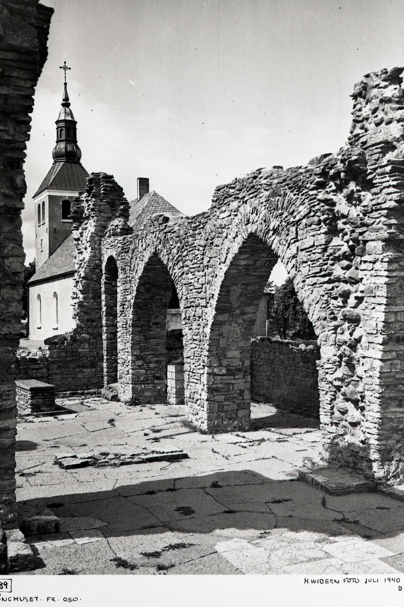 Långhuset från ostsydost. Kyrkan i bakgrunden.