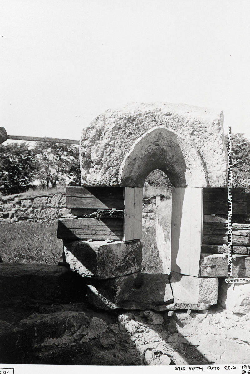 Södra korsgångens nordmur. Östra fönstret. Provuppställning från söder.