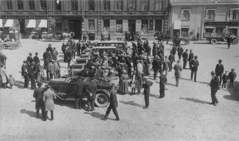 Stora torget. Den första bildemonstrationen på Falköpings stortorg.