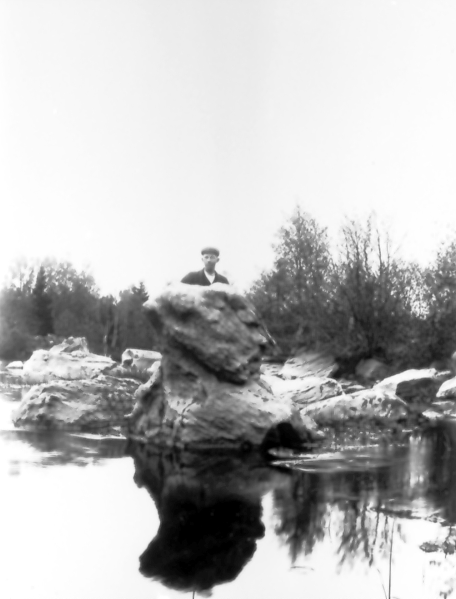 Stenansiktet som finns c:a 600 m uppströms om Händenestorp i Trevattna. Möjligen David Nätt bakom stenen.