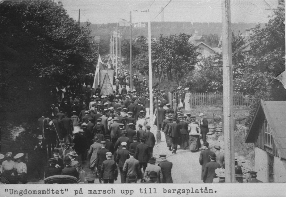 Ungdomsmötet på Mösseberg, på väg mot platån.
