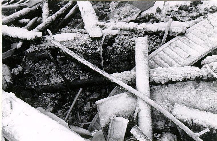 Kv. Källarmästaren, Storgatan 3. Veramagasinet, "Munkagården", efter branden i december 1963.