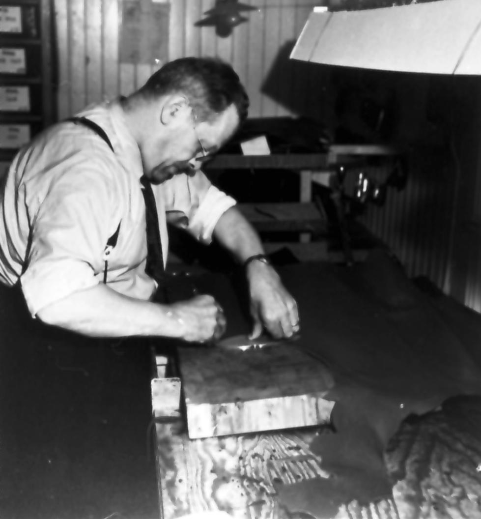 "Skärning" (Pompeius skofabrik). Från utställningen "Falköping i bild" 1952.