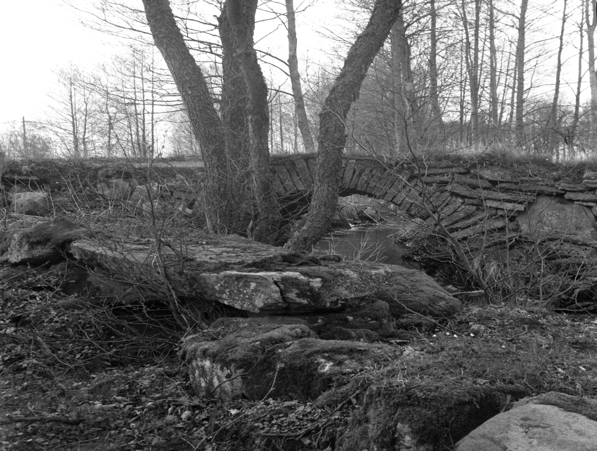 Gammal välvd bro ovanför kyrkan riven 1959.