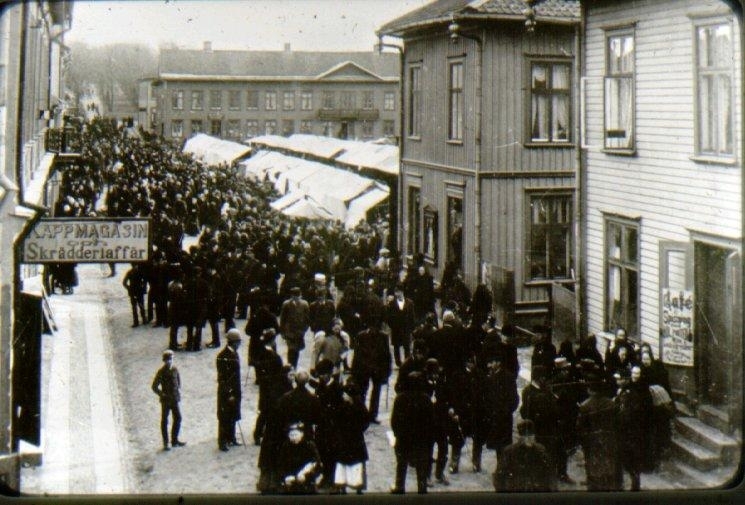 Marknadsdag på 1890-talet. Från Storgatan och Stora torget.