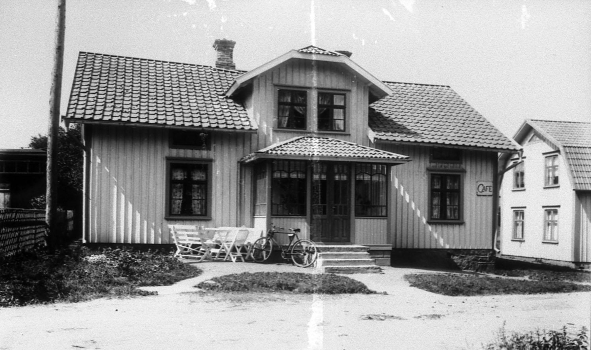 Systrarna Bengtssons hus i Floby. På andra våningen bodde alltid vid marknader grishandlare "Tumba" Karlsson.